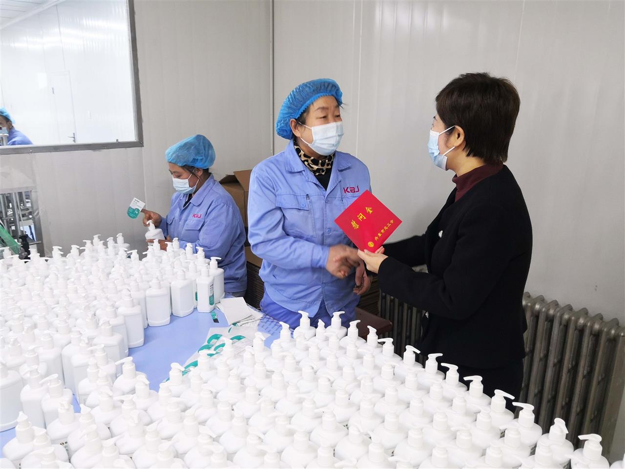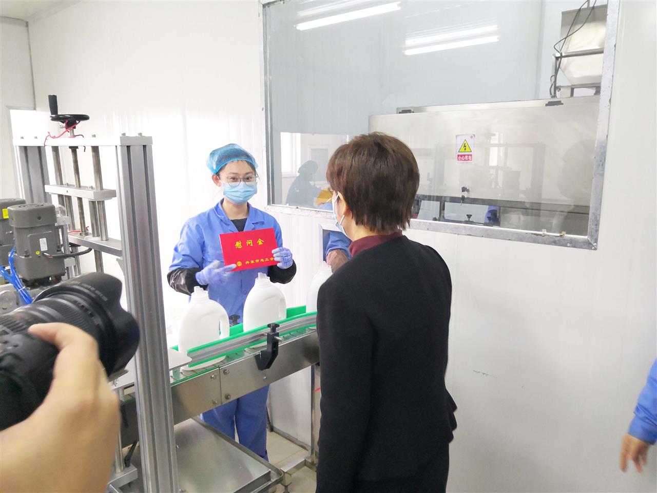牛主席與何副主席一行來到丹東欣時(shí)代生物醫(yī)藥科技有限公司消殺產(chǎn)品生產(chǎn)車間,為企業(yè)員工送去慰問金并與他們親切交談,詳細(xì)詢問他們的身體情況,生活狀況以及家庭經(jīng)濟(jì)收入情況,勉勵(lì)他們要積極樂觀面對(duì)工作和生活,有困難及時(shí)向工會(huì)反映,在黨和政府的關(guān)懷下,生活一定會(huì)越過越好。